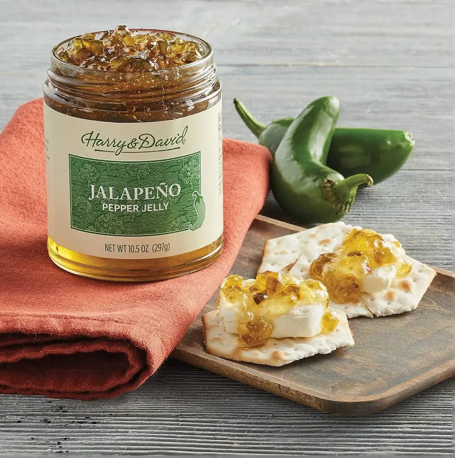 Our Green Jalapeño Pepper Jelly is a unique and flavorful condiment that combines the sweetness of sugar with the mild heat of green jalapeño peppers. This jelly’s tangy taste is so versatile!