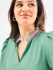 Effortlessly chic and endlessly versatile, the Naomi Dress is a perfect blend of sophistication and charm. Featuring a romantic ruffle V-neckline and 3/4 sleeves with elegant puff shoulders, this dress brings timeless femininity to your wardrobe. The contrast trim details add a modern, polished touch, while the functional pockets combine style with everyday practicality.