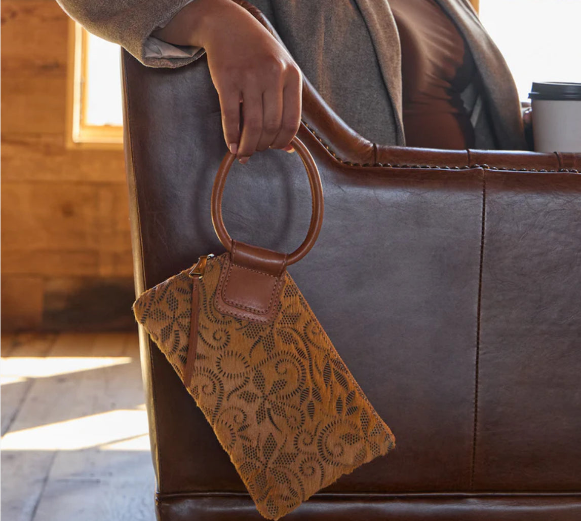A HOBO icon and best seller, Sable is our circular handle clutch made for grab-and-go moments. Now crafted in our novelty hair-on hide leather with perforated floral detailing, Sable’s made to stand out.