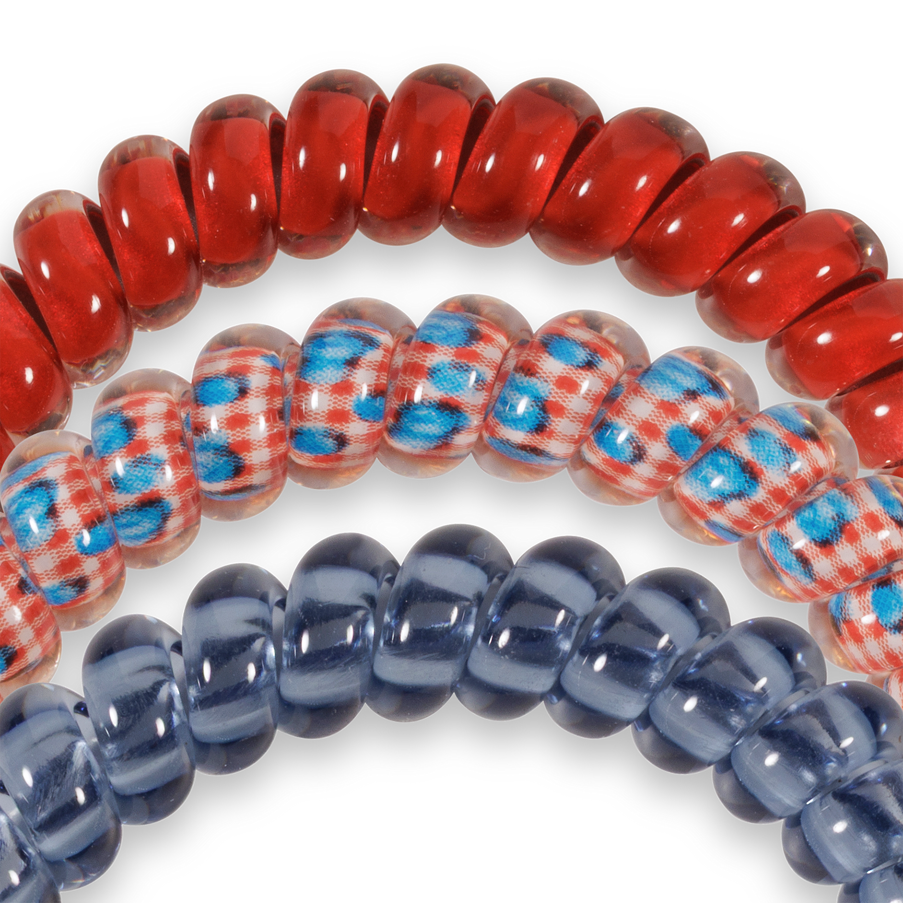 Blueberry Farms Small Hair Ties in Red and Blue offer a strong grip without damage, doubling as a chic wrist accessory when not in use. Your new favorite hair essentials all year round.