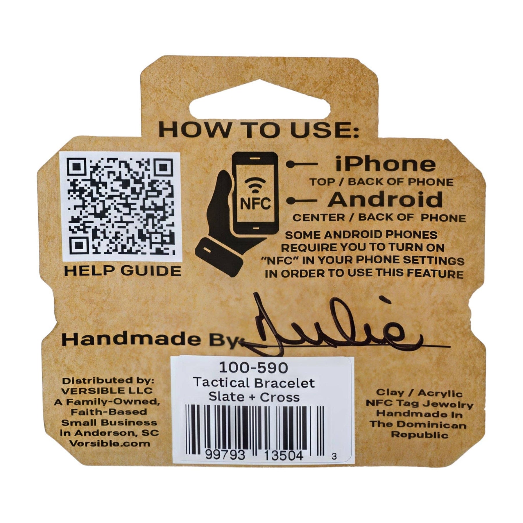 Each bracelet features an imbedded NFC chip that allows you to tap with your phone to receive a new Bible verse and prayer everyday. No app is required, just tap and hold your phone on the tag for a couple of seconds and open the notification on your phone. Tap To Pray works with most smartphones.